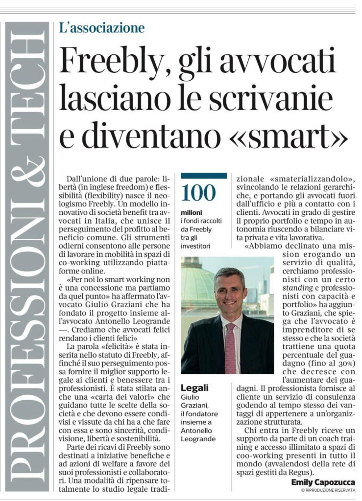 Giulio Graziani, intervistato da Corriere della Sera, racconta il modello freebly, prima società benefit tra avvocati in Italia.
