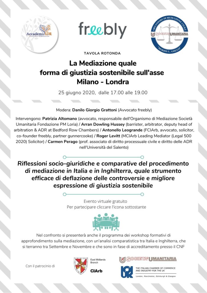 Tavola rotonda: la mediazione quale forma di giustizia sostenibile sull’asse Milano – Londra